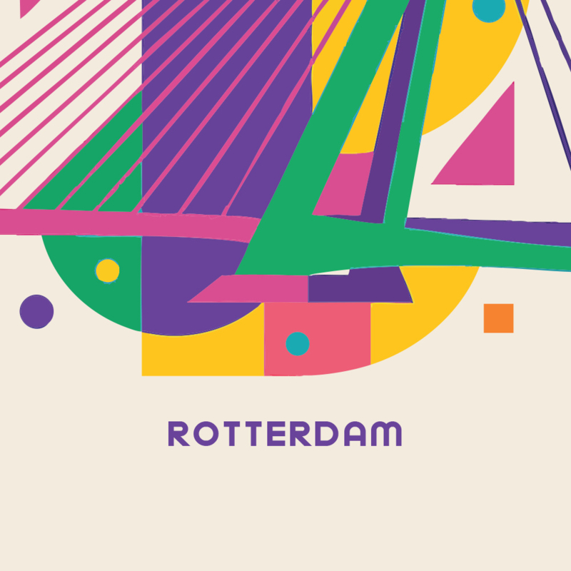 Kleurenposter! Als wij aan Rotterdam denken dan kunnen wij niet om de Erasmusbrug heen! Niemand niet toch?! Rotterdam mag ook zeker niet ontbreken bij de stadposters!