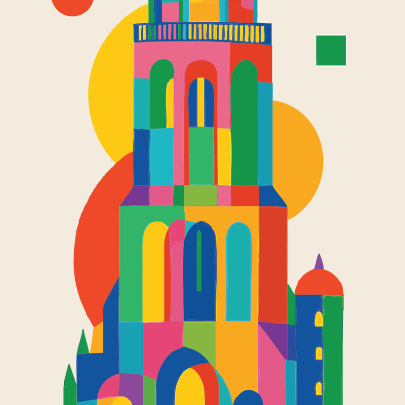 Kleurenposter! Een fantastische kerk met een uitzonderlijk mooie toren in de stad Deventer!